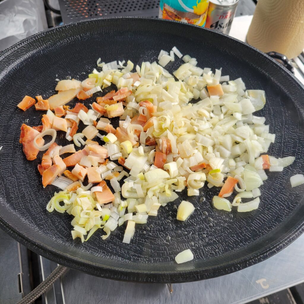 材料は2品ともほぼ一緒で、ラーメンを氷水でしめてる間に、チャーハンも完成しちゃう意外に手軽なキャンプ飯です。