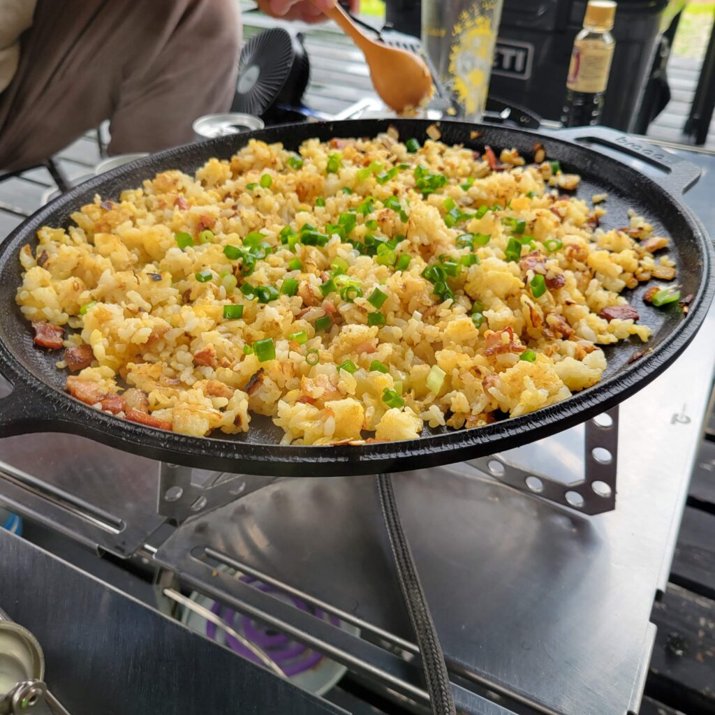 - チャーハンのご飯は、その場で炊くと大変なので、冷凍ごはんを持っていく。